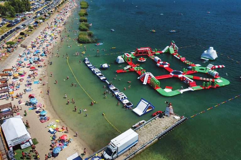 6月26日,游客在波兰塔尔诺布热格湖畔度夏。