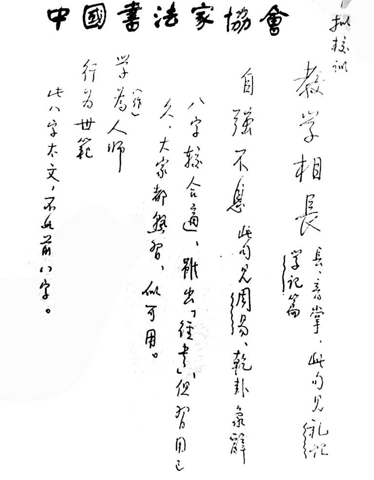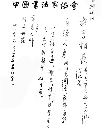 李先生更是拿出了考证依据,“最初启功先生撰写的校训是写在大约16开裁切好的宣纸上,题头还有‘校训’二字,这版校训曾经排版成横式用于学校的宣传明信片上。”