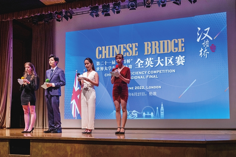 来自英国8所大学的10名选手参加了当天的比赛,在命题演讲、知识问答、才艺表演和即兴问答4个环节中展现各自的中文水平,4名获胜选手将代表英国赛区参加今年的全球复赛和决赛。 新华社 发