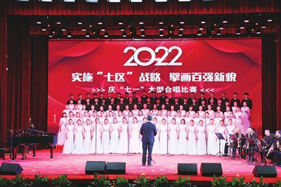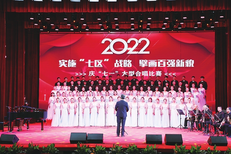 6月30日上午,“实施‘七区’战略 擘画百强新貌”小店区2022年庆“七一”大型合唱比赛活动在汾东剧场拉开帷幕。此次比赛由区委宣传部主办,区文化和旅游局承办,来自全区各街道、乡(镇)党委、区直机关党工委的19支合唱队参加了此次比赛。 司勇 李丽娜 摄