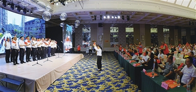 6月29日晚,万柏林区长风西街道党工委举办了“喜迎二十大”七一文艺汇演,来自辖区的12个社区队伍用自编自演的节目,共同庆祝“七一”党的生日。张昊宇 摄