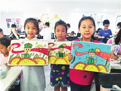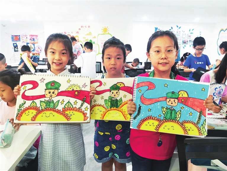 “为了新中国的成立,革命先辈们抛头颅、洒热血,不怕牺牲,勇往直前……”工作人员向孩子们讲述共产党员的英雄事迹,在轻松的氛围中让孩子们学党史。随后,孩子们用画笔描绘心中的英雄形象,表达对党的感恩之情。不一会儿,阳光、花朵、五角星、解放军叔叔,孩子们的画笔在纸间跳动,美丽的场景跃然纸上。