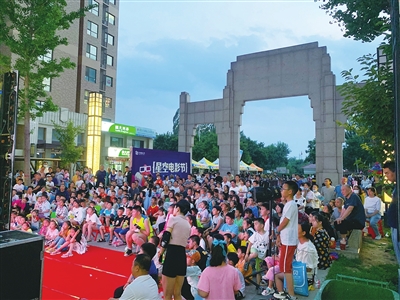 7月3日晚,富力城社区联合物业举办的星空电影节活动开幕了。邻里街坊聚在一起做游戏、看电影,极大丰富了辖区居民的夏日生活,增进了邻里之间的感情。该活动将在富力城、富力华庭等社区陆续举办,播放的影片以动画电影、红色电影为主。 袁剑锋 梁文爱 摄