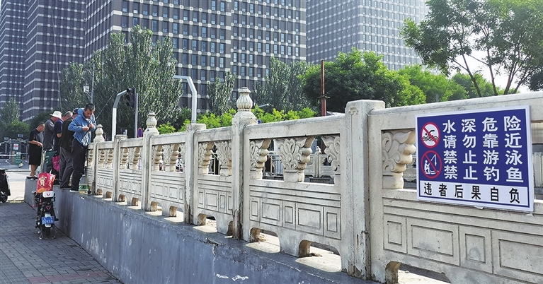 7月4日8时许,新晋祠路与广博街交叉处东南角的汾河干渠旁,五六个人正在支竿垂钓,不远处的围栏挂着“禁止钓鱼”的警示牌,这一不文明行为引得路人纷纷侧目。 李晓琳 摄