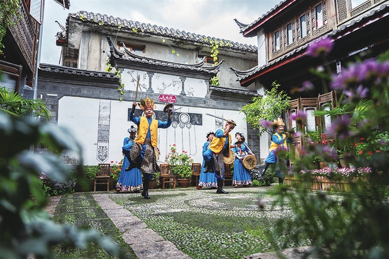 东巴舞、洞经音乐……在名为天地院的院落里,民族歌舞、乐曲吸引游客驻足观赏,迄今已逾5万人品过这里的“文化宴”。