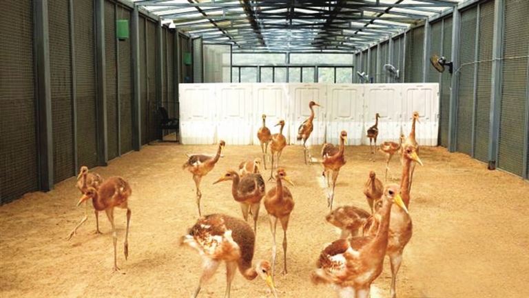 “2021年,保护区孵育了28只丹顶鹤,没想到今年数量再创新高。”保护区鸟类繁育中心副主任陈卫华介绍,每年3月至10月是丹顶鹤孵育的关键阶段,目前除了这40只小鹤,还有5只在孵育中,最后一枚鹤蛋产于6月9日,预计7月11日出壳。到了10月,所有小鹤都能翱翔天空。