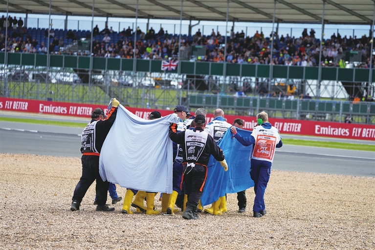 发车阶段,多辆赛车发生严重碰撞,随后赛会出示红旗,比赛暂时中断。阿尔法罗密欧车队的中国车手周冠宇的赛车被顶翻并滑出赛道。除周冠宇外,威廉姆斯车手阿尔本和梅赛德斯车手拉塞尔也因此次事故退赛。