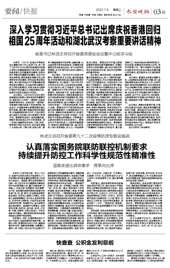 深入学习贯彻习近平总书记出席庆祝香港回归祖国25周年活动和湖北武汉考察重要讲话精神