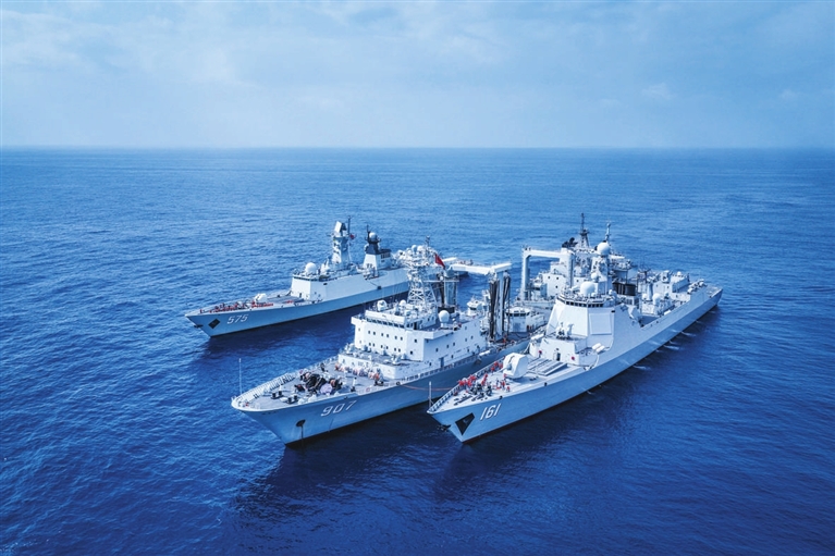 中国海军第40批护航编队由导弹驱逐舰呼和浩特舰、导弹护卫舰岳阳舰和综合补给舰骆马湖舰组成,1月15日从广东湛江某军港解缆起航。任务期间,编队严格落实疫情防控措施,严密组织护航行动,采取接力护航、延伸护航、区域监控等多种方式确保被护船舶航行安全,有力维护了国际海上贸易通道安全和地区和平稳定。