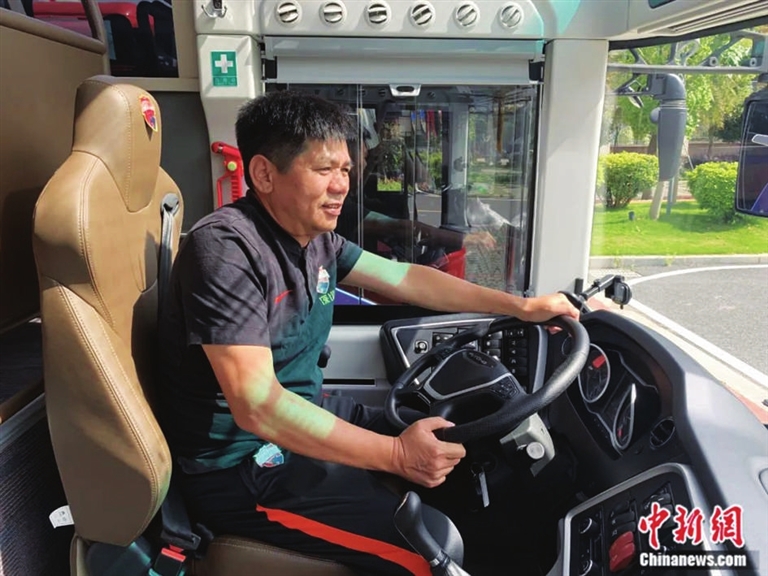 深圳队另一位大巴车司机劳师傅平时负责驾驶球员大巴车,51岁的他是名副其实的老司机,驾龄超过30年。