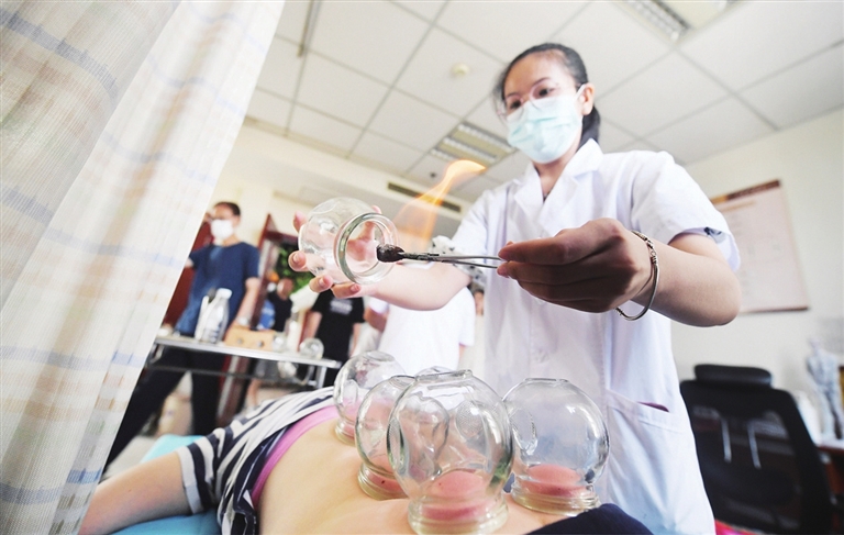 7月6日,山西省中医药大学附属医院内,不少市民前来接受“冬病夏治”疗法。该院为市民准备了丰富的中医诊疗服务,除了三伏贴之外,还有艾灸、拔火罐等疗法。 邓寅明 摄