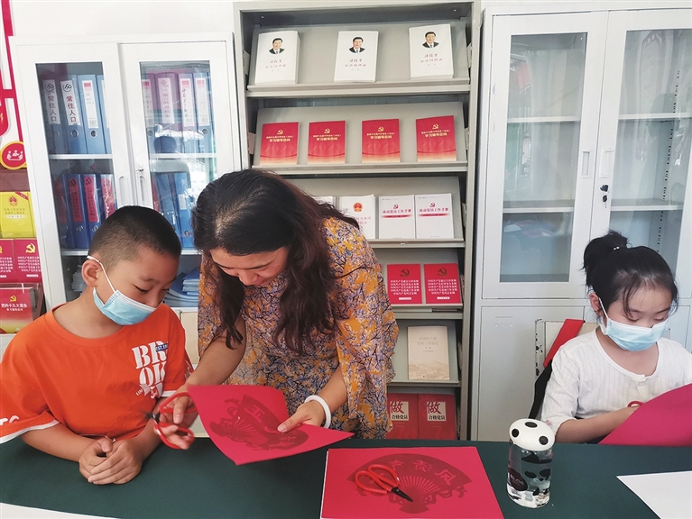 为激发儿童剪纸兴趣,传承民族文化,丰富孩子假期生活。7月7日下午,柳巷街道海东社区组织辖区儿童开展“喜迎二十大”剪纸活动。活动中,在剪纸爱好者的指导下,孩子们认真学习,不一会,一幅幅剪纸作品展现在大家面前。看着自己的作品,孩子们脸上满是愉悦的笑容。 郭晓华 刘丽 摄