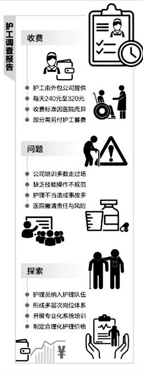 更令梁女士难以接受的是,一些医院抢救室里给患者吸痰的工作也交给护工来做。“这种操作本来不该护工管,可在里面待久了,一些界限就模糊了。”