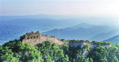 盛夏时节,草木葱茏,蜿蜒于苍山翠绿间的古老长城焕发勃勃生机。