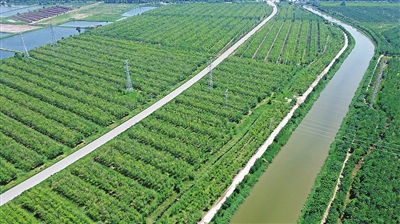 “736平方公里大约是天津中心城区面积的两倍,开始有人觉得这锁住了经济发展空间,但事实证明,这里蕴含着发展的‘绿色密码’。”天津市绿色生态屏障建设现场指挥部办公室主任边伟光说,无论是林地碳汇的“绿色银行”作用,还是生态屏障内国家会展中心(天津)带来的会展企业聚集,都是绿色的经济效益。