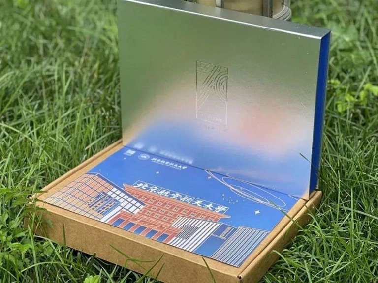 打开银色外盒,首先映入眼帘的是一套叠加梦想的亚克力卡片。翻过卡片现出录取通知书,使用北航70周年校庆主标识,色彩明丽、端庄大气,正青春的你遇见厚重的北航,逐梦篇章由此开启。 |