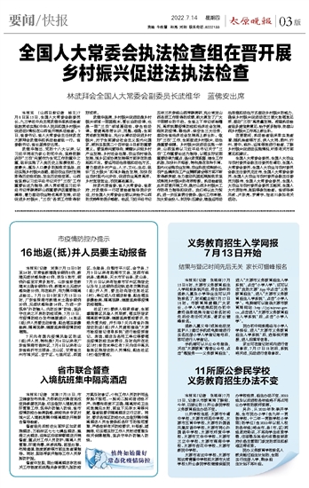 全国人大常委会执法检查组在晋开展乡村振兴促进法执法检查