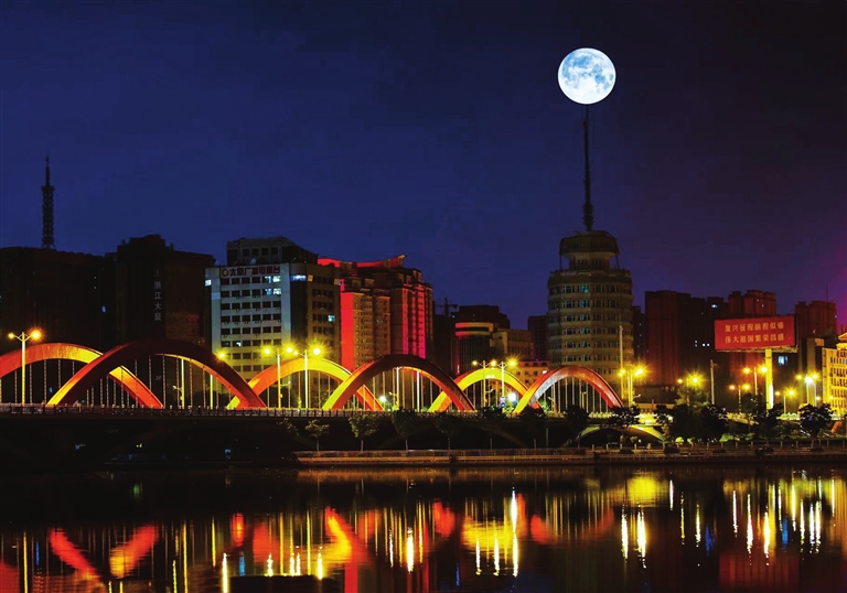 7月14日凌晨4时许,一轮“超级月亮”现身我市夜空,这也是2022年度的“最大满月”。阴钰奇 摄