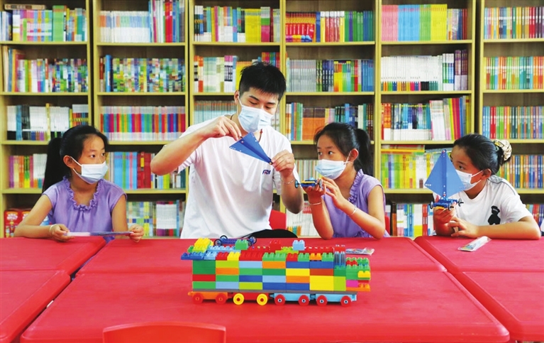 7月14日,长风西街街道地矿社区开展“阳光课堂”活动。在活动现场,专业老师与孩子们一起制作模型,丰富暑期生活。 张昊宇 摄