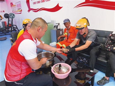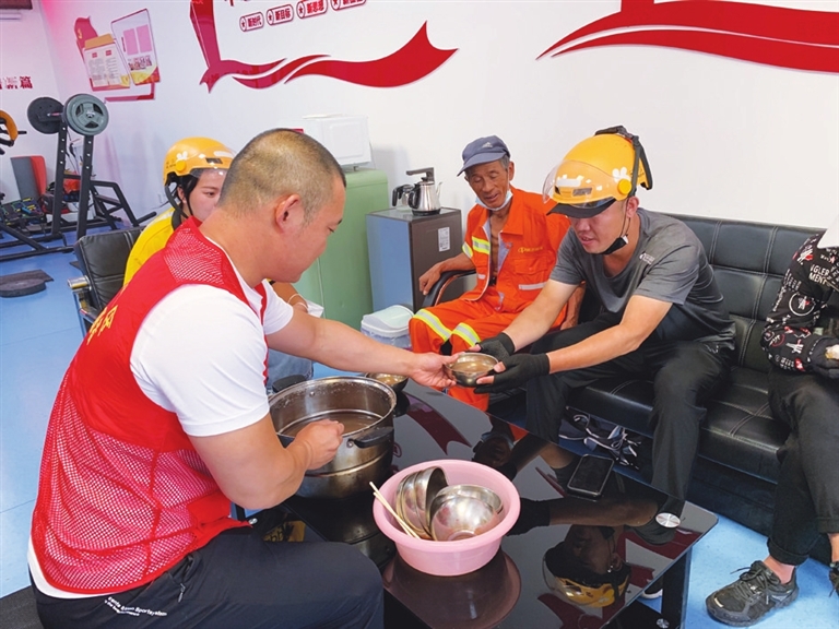 7月13日上午,喝到社区精心准备的绿豆汤,郝庄镇朝阳二社区的外卖小哥、快递员、环卫工人等户外工作者感受到丝丝清凉。这是社区为户外劳动者持续开展的“关爱职工 清凉一夏”活动,也是该社区工会为户外工作者提供的“夏季福利”,凡是该辖区的环卫工人、外卖小哥、快递员,只要来到爱心驿站,便可不限量地享受绿豆汤。 侯慧琴 刘苗苗 摄