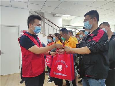 7月14日,柳巷街道办事处工会、察院后社区工会在察院后社区爱心驿站联合开展“夏日送清凉 关爱户外劳动者”慰问活动,工作人员将装有绿豆、冰糖等消暑食品的“爱心礼包”送给30名环卫工人、快递小哥,感谢他们的辛勤付出。“这份‘爱心礼包’把‘清凉’送到我们心坎里,感谢街道和社区。”韵达快递小哥郭峰说。 郭晓华 宋玉琴 摄