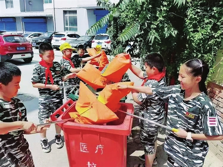 小小志愿者“地毯式”清理社区垃圾