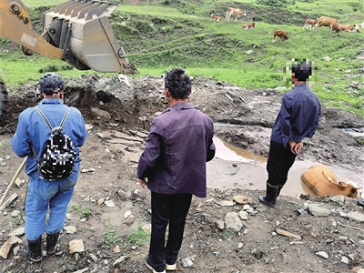 民警携带救援工具赶到现场后,发现大黄牛个头挺大,而泥坑较深,救援难度较大。随即,民警联系附近一家企业,调用挖机、铲车救援。1个多小时后,在大家努力下,黄牛才脱困。