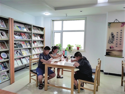 “麻雀虽小,五脏俱全。”走进这面积为1500平方米的图书馆,入口左侧是一间小小的朗读亭,有兴趣的读者可以在里面朗读自己心目中的精品美文。再往里走,是占图书馆最大面积的图书借阅室。7月12日下午,雨后更加溽热,借阅室里的空桌并不多,早有结伴而来、享受自由阅读的小伙伴;也有倾心陪伴、不时指点孩子两句的母亲;还有偏坐一隅、安静品味书中乐趣的老人,大家都从书本中找到知识带来的快乐。在借阅室里间,则是一排排摆满书籍的书架,不时有人在架前找书。
