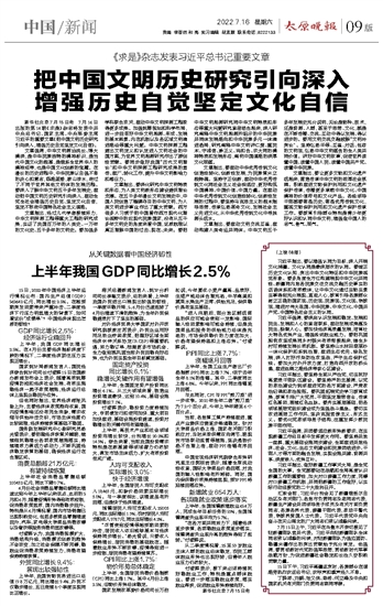 上半年我国GDP同比增长2.5%