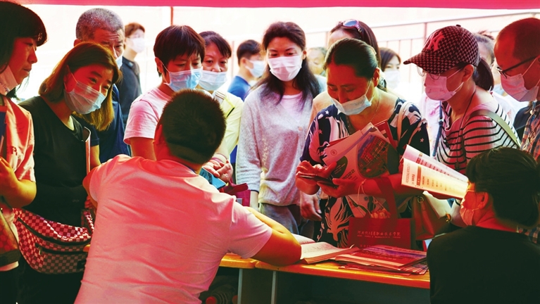 现场有太原市财贸学校、山西省司法学校、小店区第一高级职业中学等20余所中职学校布展,一拨拨考生和家长在学校展位前向招生人员详细咨询,招生人员耐心地解答每一位考生及家长提出的问题。一位考生家长说:“孩子中考成绩不理想,上不了普通高中,目前基本选定了几所职业院校作为报志愿参考。现场咨询可以更清楚地了解学校,为我们解了燃眉之急。”一些职业学校除了向家长们介绍学校办学条件、育人特色以及畅通的升学渠道外,还向家长们普及今年新修订的《中华人民共和国职业教育法》,表示职业教育同普通教育具有同等重要地位。