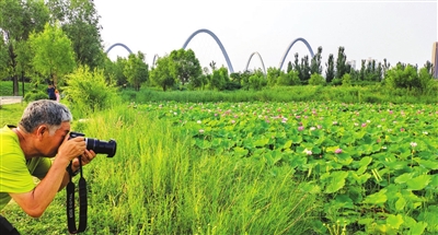 唯有绿荷红菡萏,卷舒开合任天真。进入6月下旬,太原市各处的荷花相继绽放,荷花因其美丽和特有的文化寓意而成为人们夏日赏花的首选。 杨靳葆 摄