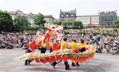 爱丁堡艺术节嘉年华活动17日在英国苏格兰首府爱丁堡市中心举行,来自数十个国家和地区的800余名演员带来各具特色的表演,300多名华侨华人组成当日最大方阵,献上丰富多彩的中国文化演出,获得观众热烈掌声。 新华社 发