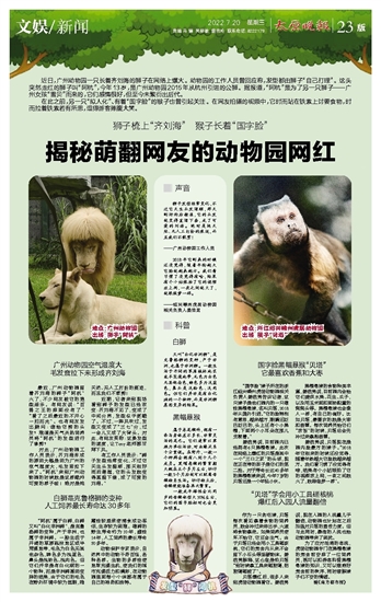 最近,广州动物园留着齐刘海的狮子“阿杭”火了,不少网友被它的造型逗乐。有网友说:“百兽之王的排面没有了”“看了之后最近的不开心一扫而光”。也有网友发出疑问:谁给它剪的头发?难道是天气炎热饲养员将“阿杭”的发型进行了修剪?