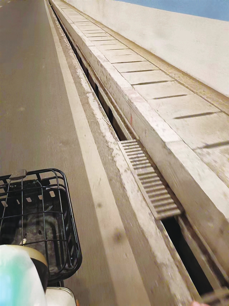 拍摄经过:双塔北路,连接五龙口街与朝阳街间,有一段长达近2公里的下穿四车道双向公路。最近一个月以来,我多次途经此路段,发现道路边有长长的排水沟,但是,上面的井盖却所剩无几,偶尔才能看到残存的一两片。假如电动车靠边行驶,车轮很容易掉入沟中,卡在边上。为了行驶安全,建议相关部门及早排除隐患。