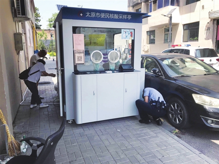 由于车上没有放置挪车电话,民警立即与交警联系,查找车主的电话仍未果。为了让工作人员能够顺利开展工作,方便周围群众做核酸检测,民警决定给采样亭“搬家”。随后,大家共同努力,将采样亭挪到了距停车位较远的位置。
