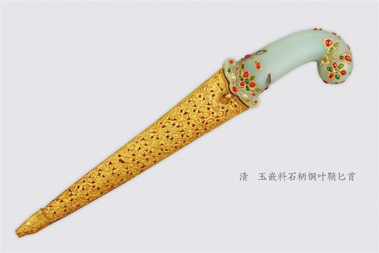 “水断蛟龙薄析兕,光连星斗气如虹。”这是乾隆皇帝在御制《题廓尔喀贡刀六韵》中对廓尔喀进贡之刀的评价。廓尔喀是清代对今天尼泊尔一带的称呼。在雍正时期,清廷与廓尔喀保持着封贡关系,其后中断。乾隆五十八年,经过两次战役,廓尔喀向清廷称臣,成为清朝属国,双方建立友好往来的封贡关系。廓尔喀以铸刀闻名,本次展览将要展出的6把廓尔喀刀中,有2把腰刀均是首次出展。同时,包括腰刀、左插刀、云头刀、手叉刀在内所有清宫收藏的廓尔喀刀型都将集体亮相,让观众一饱眼福。