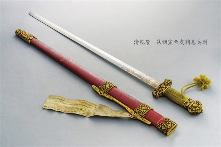 此外,乾隆皇帝的“天地人”系列刀剑是乾隆十三年始至乾隆六十年止,由内务府造办处打造的30把宝剑、90余把腰刀的总称。因其每把刀剑带有“天”“地”“人”的编号,因此得名。一直以来,这些乾隆御用刀剑都是众多武备爱好者关注的重点。但由于其绝大部分都收藏在故宫博物院,平时只零星展出,所以很多人都只能通过图录欣赏。此次展出了12把“天地人”腰刀、宝剑,为历届展览之最,其中10把刀剑均为首次走出故宫参展。 据中国新闻网