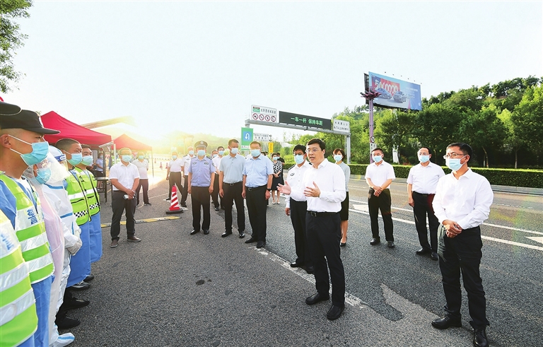 调研中,韦韬还专程来到长风西高速防疫卡口,听取工作专班联防联控情况汇报,了解车辆流量、人员配置和省外返(抵)并人员分类管控情况,走进临时休息点察看公安、卫健、交警、交通等部门防疫人员工作条件、休息环境,询问后勤保障情况,叮嘱大家要严格落实疫情防控各项最新要求,不断提高查验通行效率,进一步守好“外防输入”第一道防线。