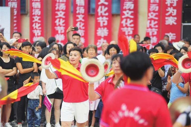 7月22日,小店区辛村举办首届牺汤文化节。小店地区自古就有喝牺汤、庆夏收的传统。现场,村民们敲起欢快的锣鼓,通过弘扬传统美食,扩大文化影响力,助力乡村振兴。 牛晨阳 摄