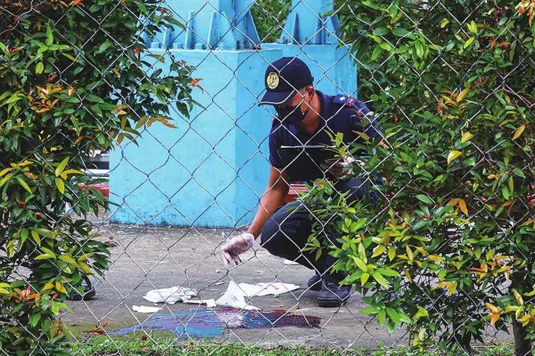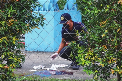 7月24日,菲律宾警察在马尼拉大区奎松市的雅典耀大学枪击事件现场工作。新华社 发
