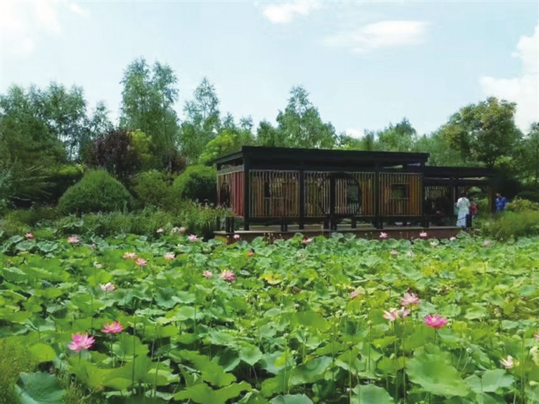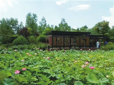 大暑时节,龙城荷花正艳。玉门河公园、和平公园、南寨公园、太原植物园等处,清秀脱俗的荷花宛如盛夏的馈赠,舒缓人们的烦躁心情。图为南寨公园南园荷花池进入最佳观赏期,人们在荷花池边、三曲桥上留下一个个美好的瞬间。 刘晓亮 摄
