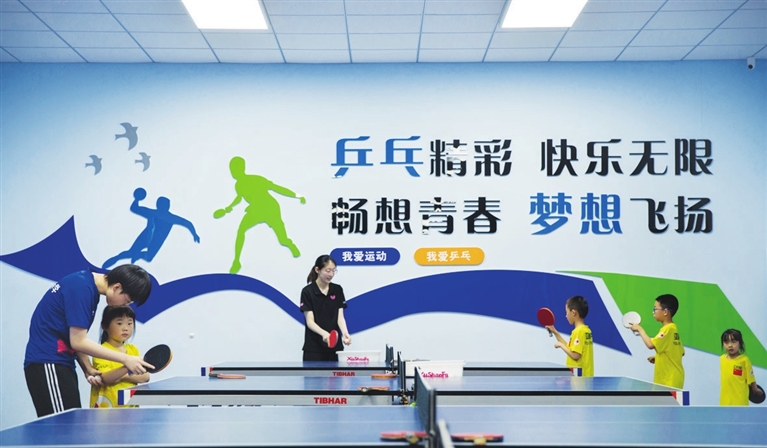 7月25日,长风西街某乒乓球馆,孩子们热火朝天地练习乒乓球。在“双减”政策下,孩子们通过体育锻炼,丰富暑期生活。 王韵菲 摄