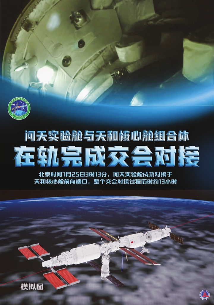 这是我国两个20吨级航天器首次在轨实现交会对接,也是空间站有航天员在轨驻留期间首次进行空间交会对接。