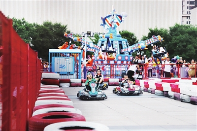 7月25日,在省城万达广场,不少儿童前来体验卡丁车,来一把“速度与激情”。 张昊宇 摄