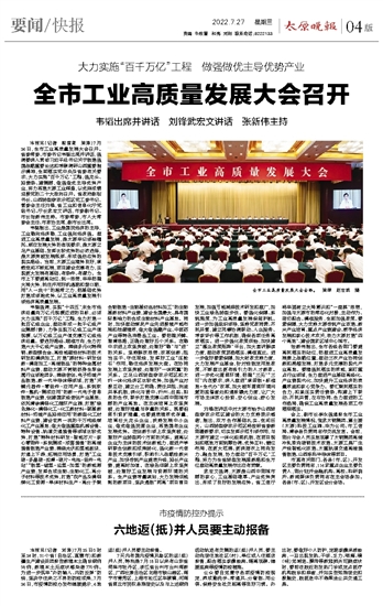 大力实施“百千万亿”工程 做强做优主导优势产业~~~韦韬出席并讲话 刘锋武宏文讲话 张新伟主持