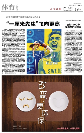 杜普兰蒂斯第五次改写撑杆跳世界纪录~~~