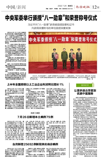 中央军委举行颁授“八一勋章”和荣誉称号仪式