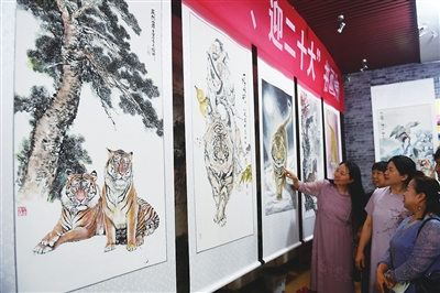 7月28日,在太原河北商会主办的《书虎画虎书画展》上,百余幅作品通过国画、书法等形式展现虎的形象、姿态,为广大书画爱好者奉上一场视觉艺术盛宴。 米国伟 摄