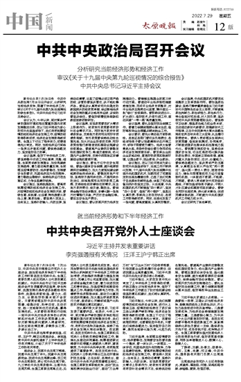 就当前经济形势和下半年经济工作~~~习近平主持并发表重要讲话 李克强通报有关情况 汪洋王沪宁韩正出席