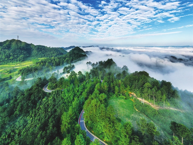 夏日,位于贵州省黔东南苗族侗族自治州施秉县的黑冲景区绿意盎然,远山、森林、公路在云海中若隐若现,犹如水墨画卷。 新华社 发